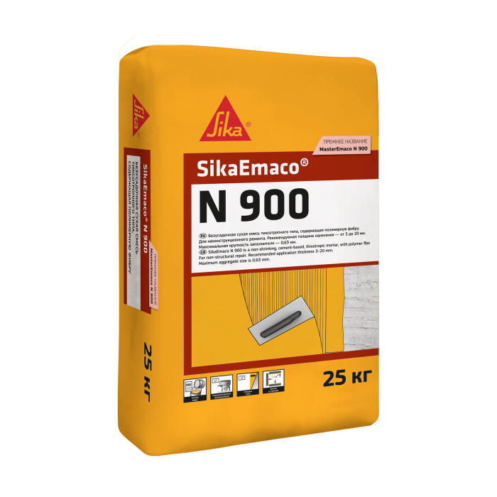 Материал SikaEmaco N 900 упакован во влагонепроницаемые мешки по 25 кг.Расход
