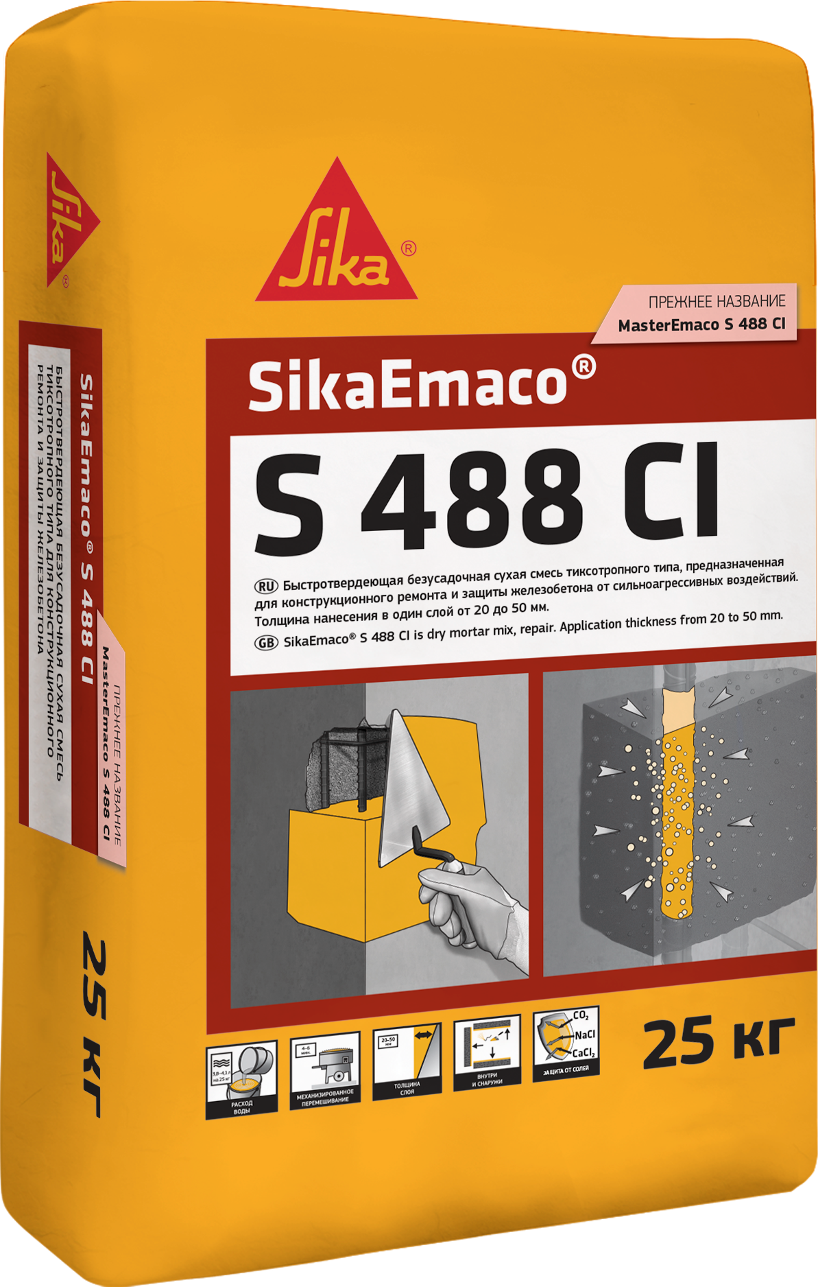 Материал SikaEmaco S 488 CI упакован во влагонепроницаемые мешки по 25 кг.Расход